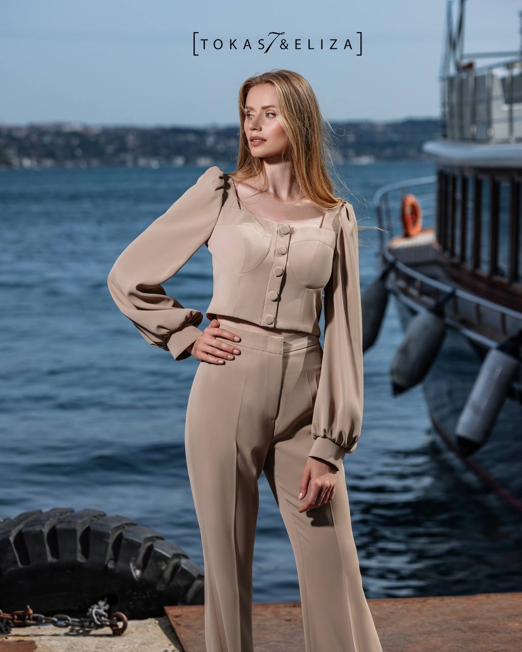 This formal two-piece set features a structured design and precise tailoring, presenting a refined balance between form, softness, and elegance. Crafted from a fluid, well-draped fabric and finished with minimalist details, this design is an ideal choice for formal occasions, special events, and contemporary elegant styling. Its timeless silhouette allows for lasting wear and effortless pairing with a variety of accessories.