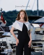 This elegant black jumpsuit is designed to embody timeless sophistication with a modern edge. Featuring a refined white collar detail, it creates a striking contrast that enhances its minimalist aesthetic. Tailored in high-quality diagonal-weave fabric, the piece offers both structure and comfort, ensuring a flattering silhouette.