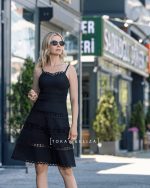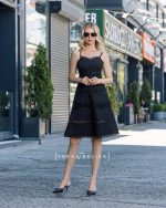 The Varvara cocktail dress, short and minimal, features a classic black color that gives a chic and formal appearance.